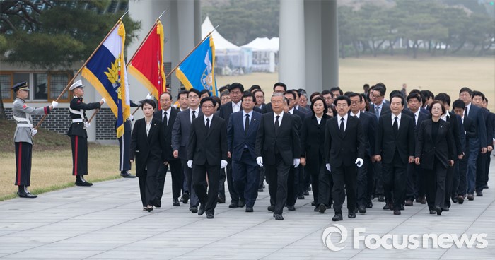 (서울=포커스뉴스) 14일 오전 동작구 국립서울현충원에서 김종인 더불어민주당 비대위 대표와 20대 총선 당선인들이 현충탑 참배를 위해 이동하고 있다.