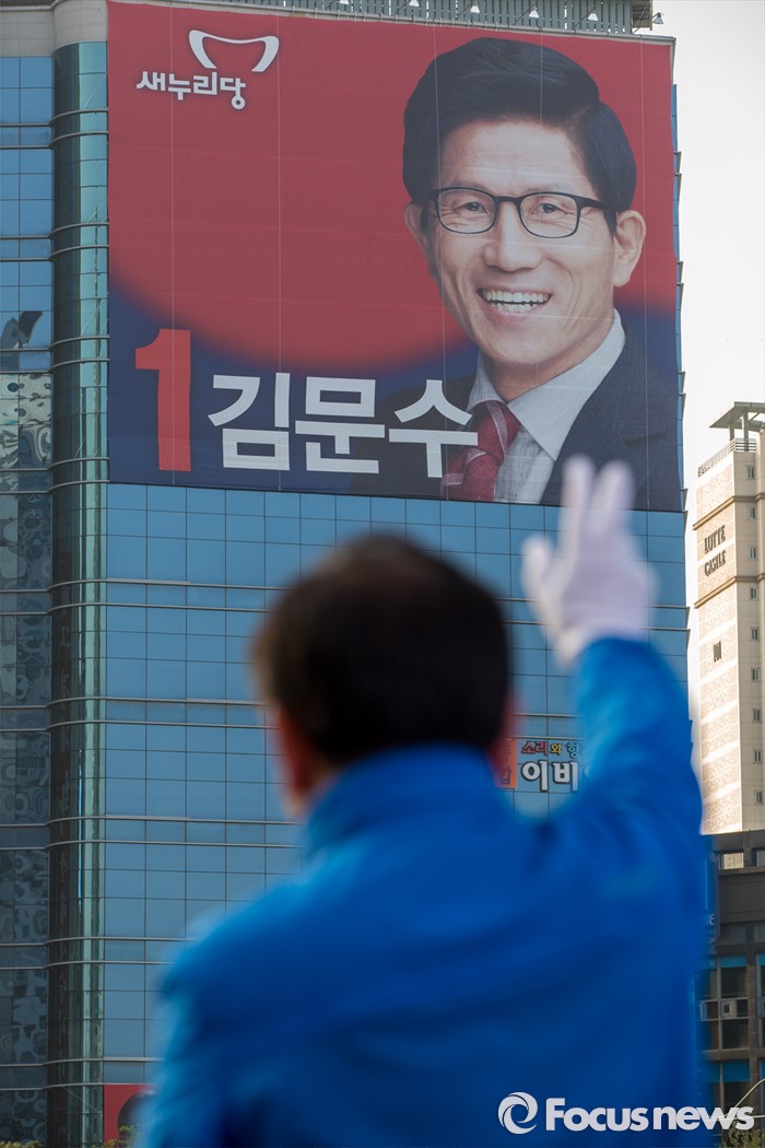 (대구=포커스뉴스) 제20대 국회의원선거 대구 수성구갑 선거구에서 당선된 더불어민주당 김부겸 당선자가 14일 오전 대구 수성구 범어네거리에서 당선 인사를 하고 있다.