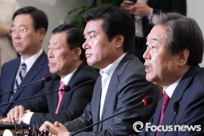 (서울=포커스뉴스) 김무성(오른쪽) 새누리당 대표가 14일 오전 서울 여의도 국회에서 열린 중앙선대위 해단식에 참석해, 발언하고 있다. 이 자리에서 김 대표는 "선거 참패에 책임을 지고, 오늘부터 대표직을 사퇴한다"고 밝혔다.