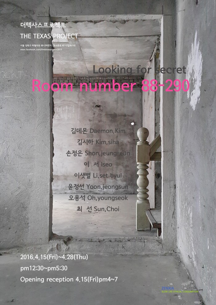 '룩킹 포 시크릿<룸 넘버 88-290>' 전시는 오는 15일부터 28일까지 서울 성북구 하월곡동 88-290번지 '더 텍사스 프로젝트'에서 열린다. 관람은 오후 12시30분부터 5시30분까지 가능하며 입장료는 무료다.'룩킹 포 시크릿<룸 넘버 88-290>' 전시회 포스터.<사진제공=더텍사스프로젝트>