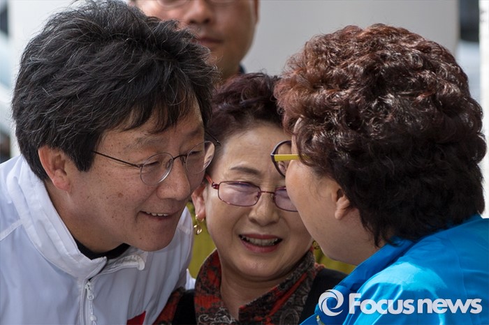 (대구=포커스뉴스) 제20대 국회의원선거 대구 동구을 지역구에서 당선된 무소속 유승민 당선자가 14일 오전 대구 동구 불로시장에 도착해 주민들에게 당선인사 하고 있다.