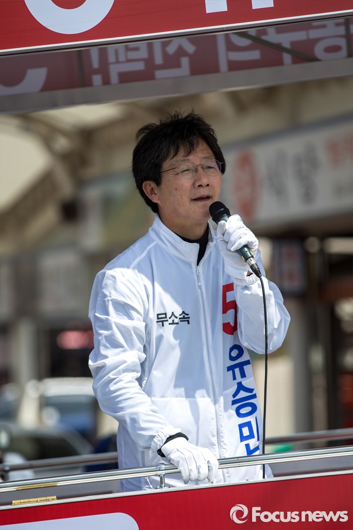 (대구=포커스뉴스) 제20대 국회의원선거 대구 동구을 지역구에서 당선된 무소속 유승민 당선자가 14일 오전 대구 동구 불로시장에 도착해 주민들에게 당선인사 하고 있다.