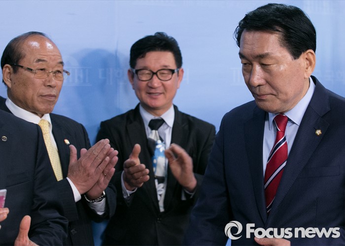 (서울=포커스뉴스) 20대 총선에서 인천 중구·동구·강화군·옹진군 지역구에서 당선된 안상수 무소속 당선인이 14일 오전 서울 여의도 국회 정론관에서 새누리당 복당 선언 기자회견을 마친 뒤 지지자들의 박수를 받으며 퇴장하고 있다.