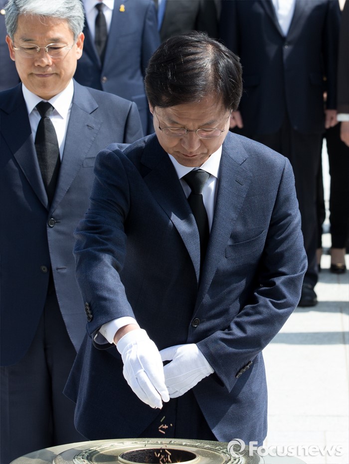 (광주=포커스뉴스) 14일 오후 광주 북구 국립5.18민주묘지에서 천정배 국민의당 공동대표가 분향을 하고 있다.
