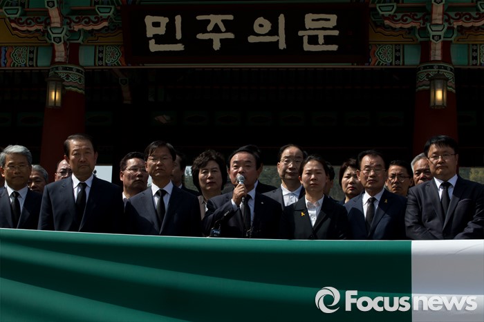 (광주=포커스뉴스) 14일 오후 광주 북구 국립5.18민주묘지에서 장병완 국민의당 동구남구갑 당선인이 참배를 마치고 취재진 질문에 답하고 있다.
