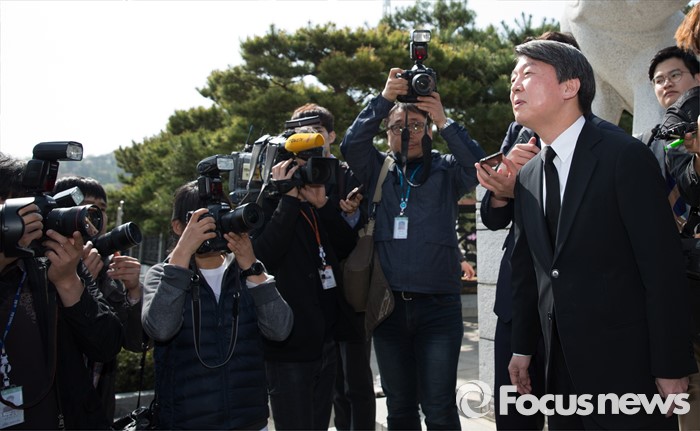 (서울=포커스뉴스) 안철수 국민의당 상임공동대표가 15일 오전 서울 동작구 국립서울현충원에서 현충탑 참배를 마친 뒤 방문객들에게 인사하고 있다.