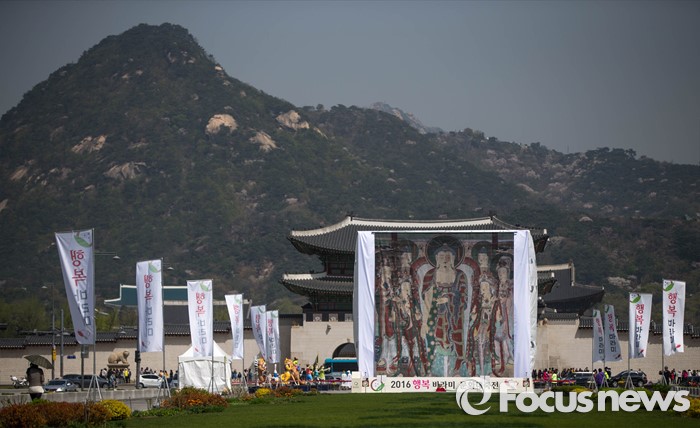 광화문 광장에 걸린 대형 탱화