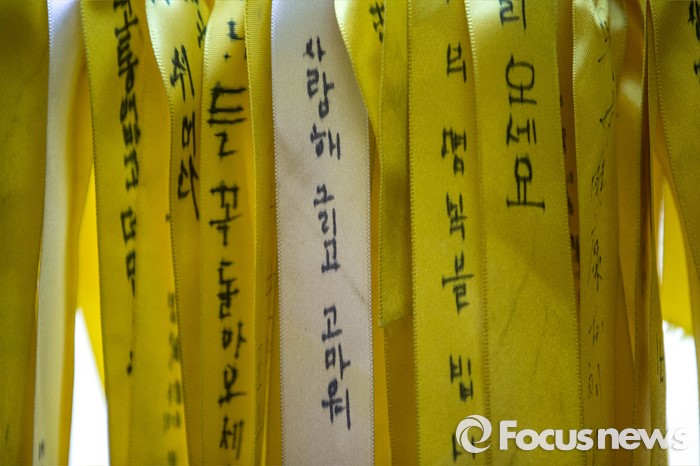 (서울=포커스뉴스) 세월호 2주기를 하루 앞둔 15일 오전 서울 중구 서울도서관에 마련된 '별이되다' 추모 전시관에 시민들이 희생자들에게 남긴 메세지가 벽면에 붙어 있다.