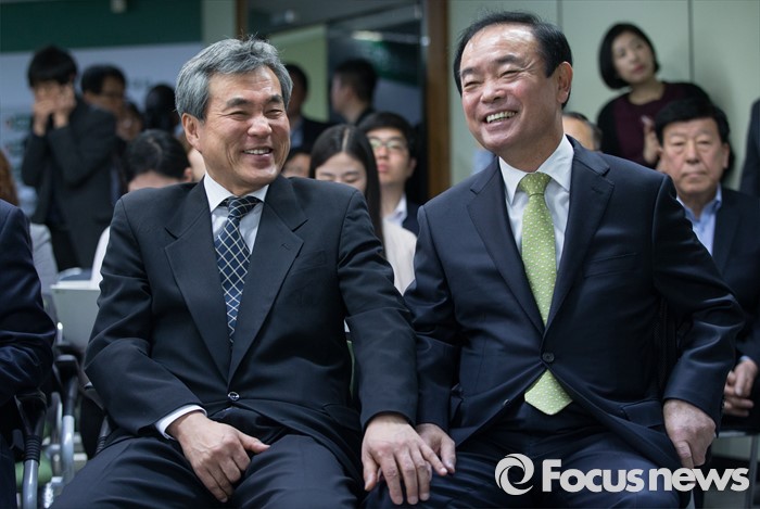 (서울=포커스뉴스) 이상돈 국민의당 선대위원장(왼쪽)과 장병완 의원이 15일 오전 서울 마포구 당사에서 열린 국민의당 당선자 대회 및 선거대책위원회 해단식에서 대화하고 있다.