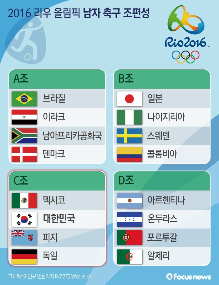 | △ [그래픽] 2016 리우 올림픽 남자 축구 조편성 |