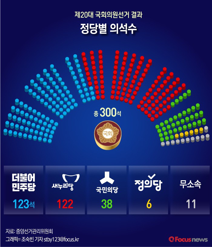 | △ [그래픽] 제20대 국회의원선거 정당별 의석수 |