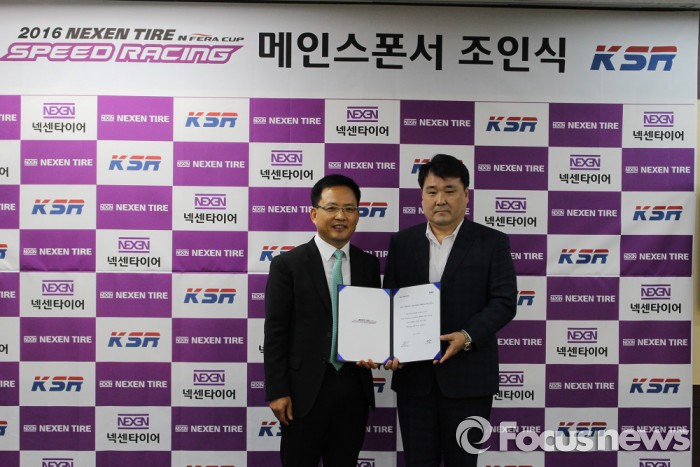 (서울=포커스뉴스) 넥센타이어는 서울 방배동 넥센빌딩에서 코리아스피드레이싱(KSR)과 '2016 넥센타이어 스피드레이싱 엔페라컵' 후원 조인식을 가졌다고 15일 밝혔다.