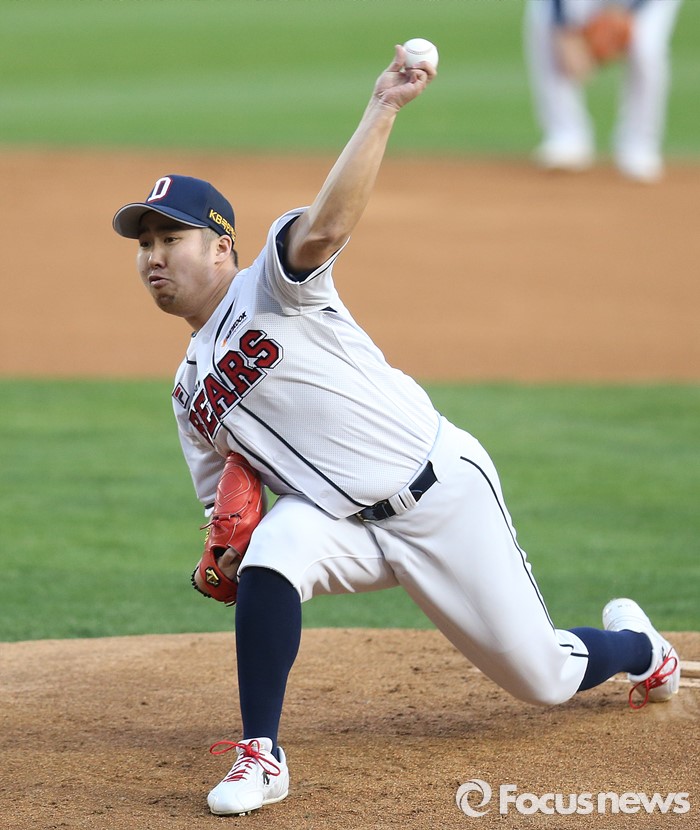 (서울=포커스뉴스) 15일 서울 잠실구장에서 열린 2016 프로야구 삼성-두산 경기에서 1회초 두산 선발투수 유희관이 투구하고 있다.