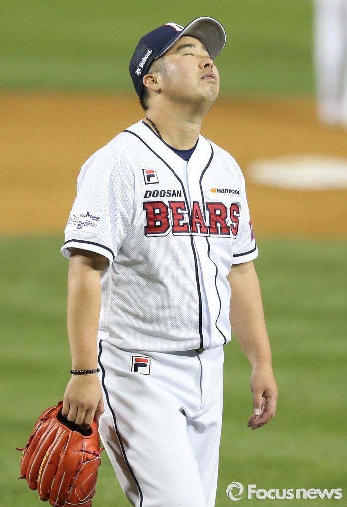 (서울=포커스뉴스) 15일 서울 잠실구장에서 열린 2016 프로야구 삼성-두산 경기 7회초 2사 만루에서 두산 선발투수 유희관이 마운드에서 내려 오고 있다.