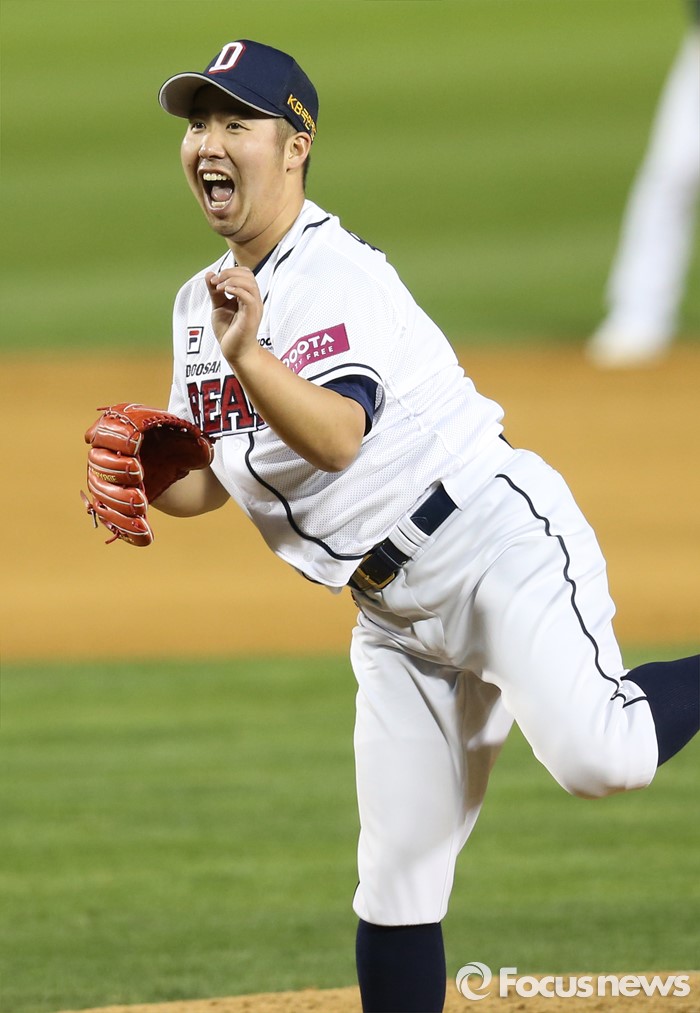 (서울=포커스뉴스) 15일 서울 잠실구장에서 열린 2016 프로야구 삼성-두산 경기 7회초 2사 2루에서 두산 투수 유희관이 삼성 조동찬을 볼넷으로 내보내며 아쉬워하고 있다.