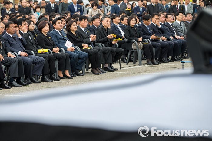 (안산=포커스뉴스) 16일 오전 경기도 안산시 단원구 화랑유원지에 마련된 합동분향소에서 열린 '세월호 참사 2년 기억식'에 여야 정치인 및 이번 20대 국회의원선거 경기지역 당선자들이 참석 하고 있다.