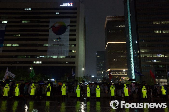 (서울=포커스뉴스) 16일 오후 서울 종로구 광화문 광장에서 열린 '세월호 참사 2주기 전국집중 범국민 추모문화제'에서 경찰병력이 주변 경계를 하고 있다.