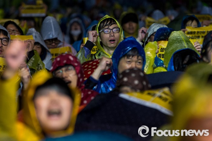 (서울=포커스뉴스) 16일 오후 서울 종로구 광화문 광장에서 열린 '세월호 참사 2주기 전국집중 범국민 추모문화제'에 참가한 유가족 및 시민들이 세월호 진상규명을 촉구 하고 있다.