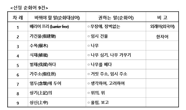(서울=포커스뉴스) 서울시는 지난달 29일 국어바르게쓰기위원회 정기회의를 통해 행정용어 중 한자어 8개와 외래어 1개를 순화어로 선정했다고 17일 밝혔다.