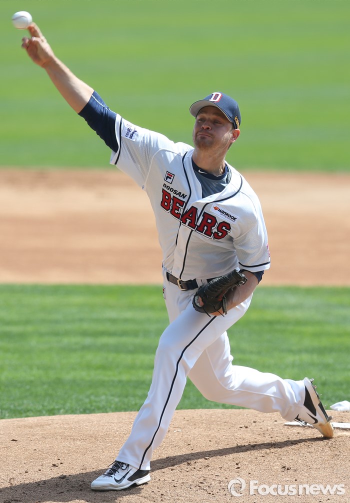 (서울=포커스뉴스) 17일 서울 잠실구장에서 열린 2016 프로야구 삼성-두산 경기에서 1회초 두산 선발투수 보우덴이 투구하고 있다.
