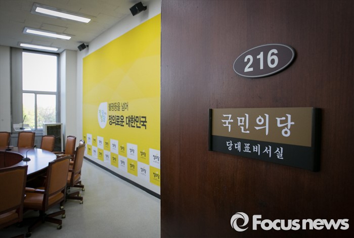 (서울=포커스뉴스) 18일 오전 서울 여의도 국회 본청 216호에 마련된 국민의당 당대표비서실에 정의당의 백보드가 보이고 있다. 본청 216호 사무실은 정의당이 원내대표실로 사용하던 곳이다.
