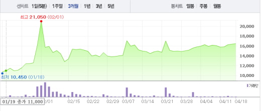 지카 바이러스 백신 개발 기업인 진원생명과학은 유일하게 3거래일 연속 상승세 흐름을 이어가고 있다. 진원생명과학은 오전 10시 33분 현재 전일 대비 0.61%(100원) 상승한 1만6500원에 거래 중이다. 질병관리본부가 국제백신연구소와 지카바이러스 백신 개발에 상호 협력하기로 하면서 이에 따른 수혜 기대감으로 주가가 오르고 있다.