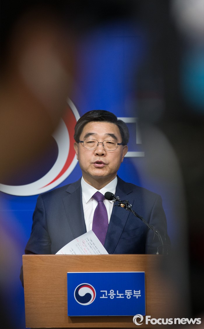 (세종=포커스뉴스) 이기권 고용노동부 장관이 18일 오전 세종시 정부세종청사 고용노동부 기자실에서 일자리 확대와 격차해소 방안을 발표하고 있다.
