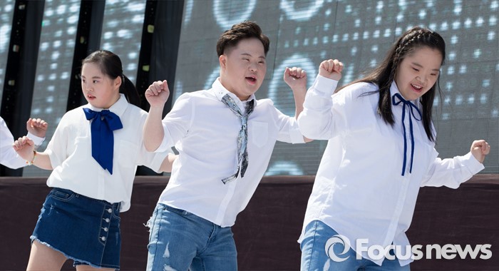(서울=포커스뉴스) 18일 오전 서울 영등포구 여의도공원에서 함께서울 누리축제에 참가한 장애인 공연팀이 예술공연을 선보이고 있다.