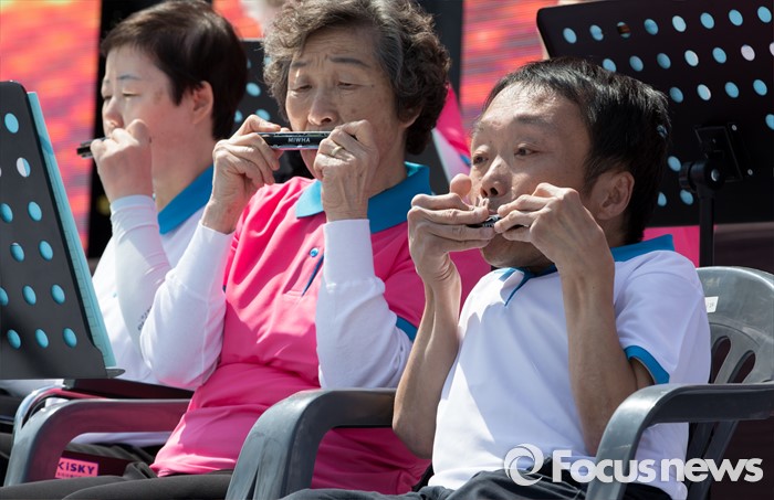 (서울=포커스뉴스) 18일 오전 서울 영등포구 여의도공원에서 함께서울 누리축제에 참가한 장애인 공연팀이 예술공연을 선보이고 있다.