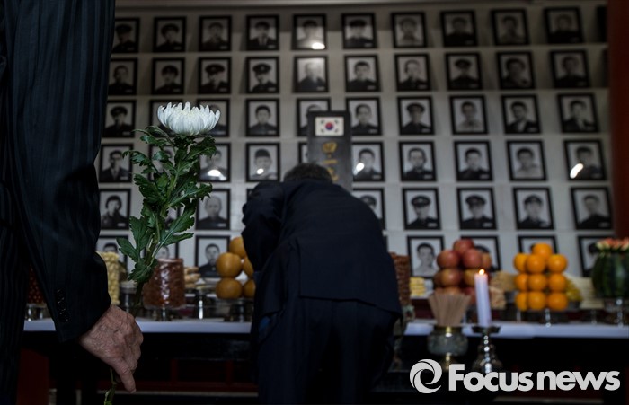 (서울=포커스뉴스) 4·19 혁명 56주기를 하루 앞둔 18일 오전 서울 강북구 국립4.19 민주묘지 유영봉안소에서 열린 4.19 혁명 희생영령 추모제를 찾은 유가족 및 관계자들이 헌화하고 있다.