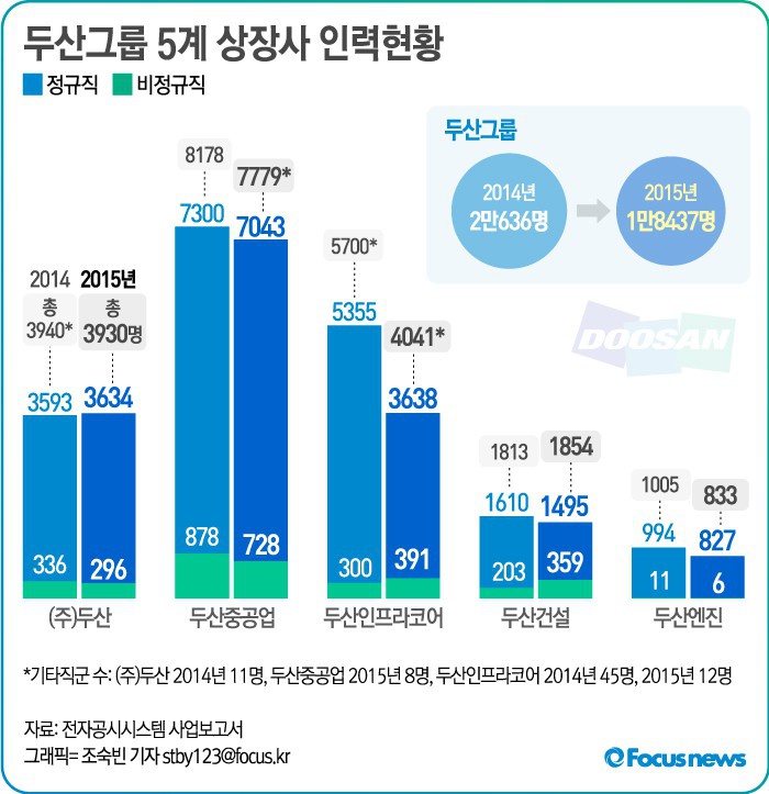 (서울=포커스뉴스) 지난해 대규모 인력 구조조정이 있었던 두산그룹이 올해에도 추가 감원을 단행할지 관심이 모아지고 있다.