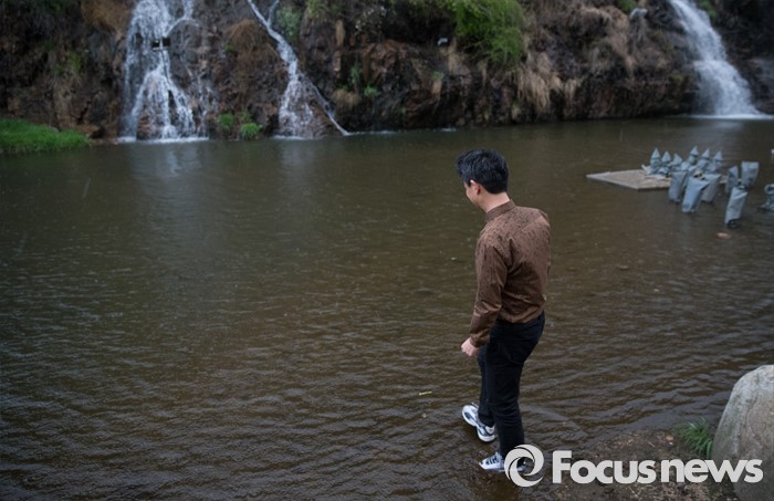 (서울=포커스뉴스) 제20대 국회의원 선거에서 당선된 김영호 더불어민주당 서대문을 당선자가 18일 오후 서울 서대문구 홍제천 폭포마당에 입수 하고 있다. 김 당선자는 서대문을 지역 투표율 60% 달성 시 홍제천 입수, 아내는 픽미댄스를 추겠다고 약속 하였다.