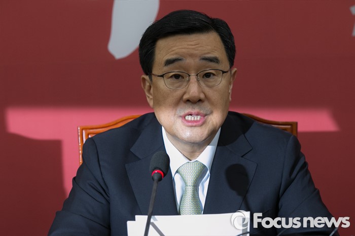 (서울=포커스뉴스) 김정훈 새누리당 정책위의장이 19일 오전 서울 여의도 국회에서 열린 원내대표단회의에 참석해 발언하고 있다.
