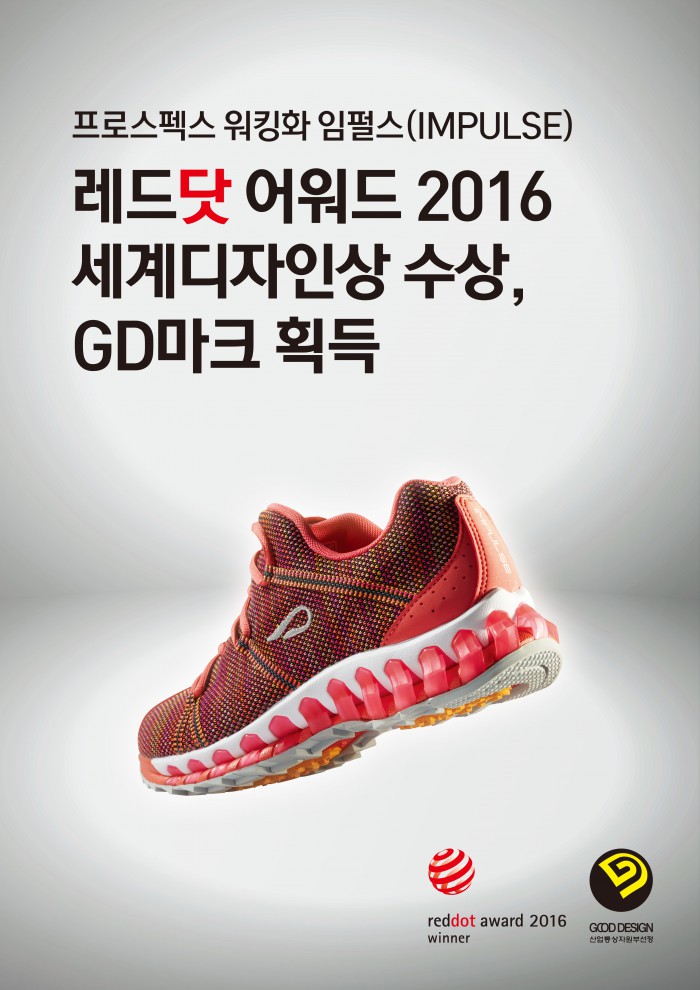 프로스펙스 관계자는 "올해 주력 제품인 '임펄스'가 세계적으로 권위 있는 레드닷 어워드에서 수상하게 돼 기쁘게 생각한다"면서 "앞으로도 워킹에 최적화된 기능성과 디자인을 갖춘 제품을 선보이기 위해 끊임없이 노력하겠다"고 밝혔다.