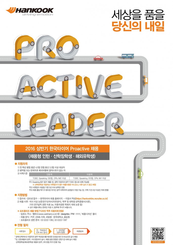 (서울=포커스뉴스) 한국타이어는 2016년 상반기 프로액티브 리더 채용을 진행한다고 19일 밝혔다.