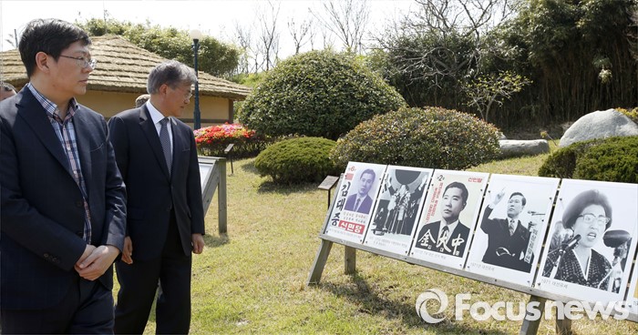 (서울=포커스뉴스) 문재인(오른쪽) 전 더불어민주당대표가 18일 김대중 전 대통령의 3남인 김홍걸 더불어민주당 국민통합위원장과 함께 전남 신안 하의도에 있는 김 전 대통령의 생가를 방문, 전시된 김대중대통령 내외 사진을 보고 있다.<사진제공=문재인의원실>