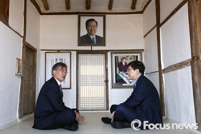 (서울=포커스뉴스) 문재인(왼쪽) 전 더불어민주당대표가 18일 김대중 전 대통령의 3남인 김홍걸 더불어민주당 국민통합위원장과 함께 전남 신안 하의도에 있는 김 전 대통령의 생가를 방문하고 있다.<사진제공=문재인의원실>