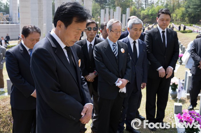 (서울=포커스뉴스) 19일 오전 손학규 전 더불어민주당 상임고문이 서울 강북구 국립 4.19민주묘지를 찾아 참배하고 있다.