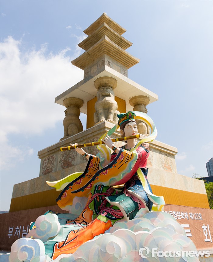 (서울=포커스뉴스) 19일 오전 서울 광화문광장에 봉축장엄등이 설치돼 있다. 20일 광화문광장에서 열리는 봉축장엄등 점등식은 국보 제35호인 화엄사 사사자삼층석탑을 원형으로 삼아 제작됐다.