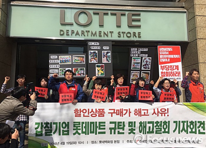 (서울=포커스뉴스) 지난 12일 롯데마트 울산진장점에서 근무하는 이혜경씨는 마트에서 파는 할인상품을 구매했다는 이유로 회사로부터 해고 통지서를 받았다.