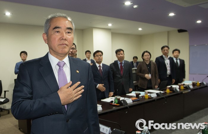 (세종=포커스뉴스) 이성호 국민안전처 차관이 19일 오후 세종시 정부세종2청사 국민안전처 고용회의실에서 열린 특수재난분야 안전정책조정 실무위원회에 앞서 국기에 대한 경례를 하고 있다.