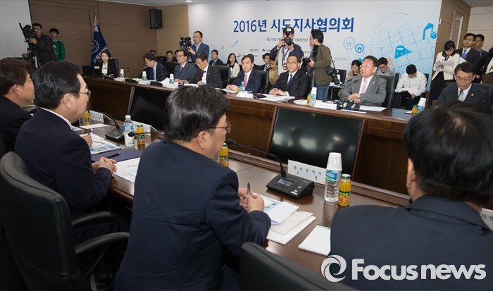 (세종=포커스뉴스) 유일호 경제부총리 겸 기획재정부장관이 19일 오후 세종시 정부세종청사 기획재정부 대회의실에서 열린 2016년 시도지사협의회에 참석해 모두발언을 하고 있다.