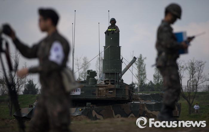 (여주=포커스뉴스) 19일 오전 경기도 여주시 남한강 일대에서 육군 20사단이 K-2 흑표전차 잠수도하훈련을 하고 있다.