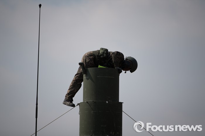 (여주=포커스뉴스) 19일 오전 경기도 여주시 남한강 일대에서 육군 20사단이 K-2 흑표전차 잠수도하훈련을 하고 있다.