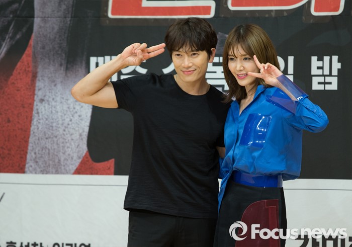 (서울=포커스뉴스) 19일 오후 서울 SBS 목동사옥에서 열린 SBS 드라마 스페셜 '딴따라' 제작발표회에 참석한 배우 지성(왼쪽)과 채정안이 포토타임을 갖고 있다.