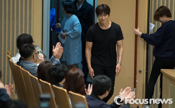 (서울=포커스뉴스) 19일 오후 서울 SBS 목동사옥에서 열린 SBS 드라마 스페셜 '딴따라' 제작발표회에 참석한 배우 지성이 자리를 향해 이동하고 있다.