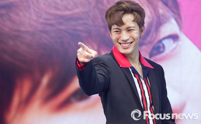 홀서울=포커스뉴스) 19일 오후 서울 마포구 롯데카드 아트센터에서 열린 아이돌그룹 VIXX의 싱글앨범 'Zelos' 발표 쇼케이스에 참여한 멤버 홍빈이 포토타임을 갖고 있다.