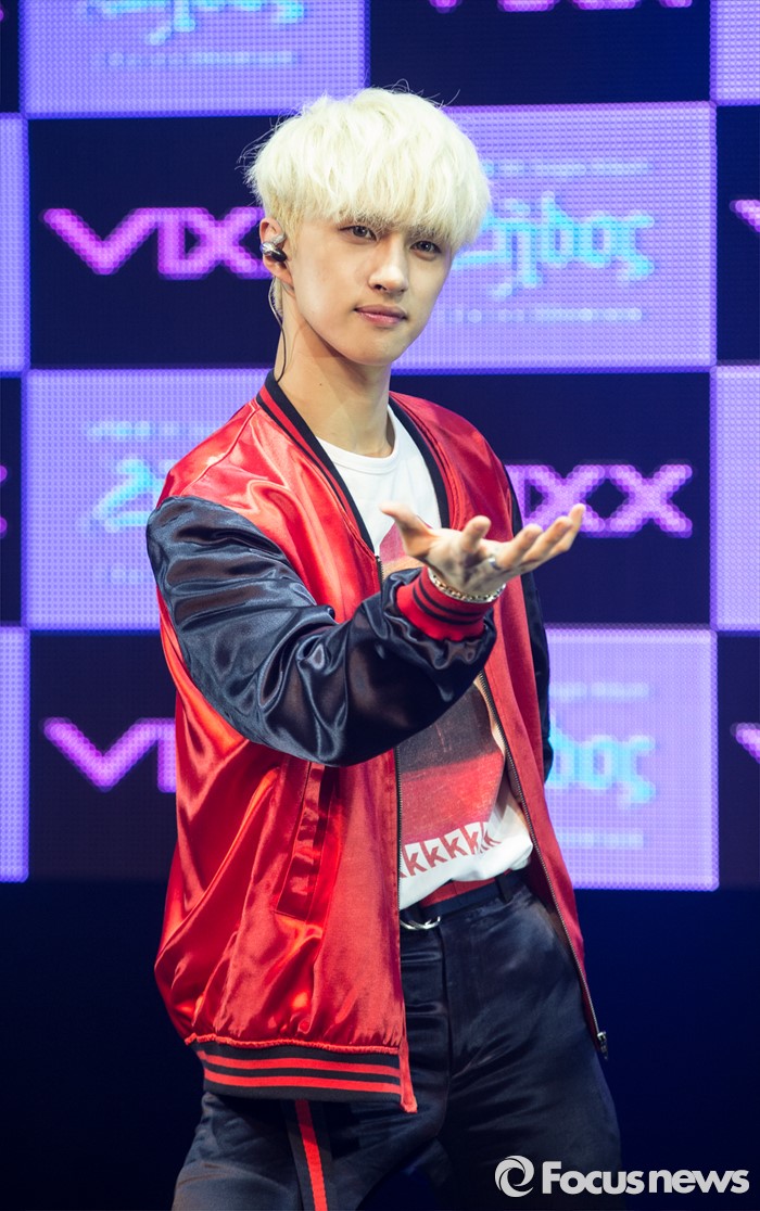 홀서울=포커스뉴스) 19일 오후 서울 마포구 롯데카드 아트센터에서 열린 아이돌그룹 VIXX의 싱글앨범 'Zelos' 발표 쇼케이스에 참여한 멤버 켄이 포토타임을 갖고 있다.
