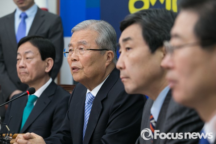 (서울=포커스뉴스) 김종인(왼쪽 두번째) 더불어민주당 비대위 대표가 20일 오전 서울 여의도 국회에서 열린 비상대책위원회의에 참석해 모두발언을 하고 있다.