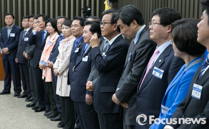 (서울=포커스뉴스) 20일 오전 서울 여의도 국회에서 열린 더불어민주당 20대 총선 당선자 대회에 참석한 원혜영 등 경기도 지역 당선인들이 인사말을 하고 있다.